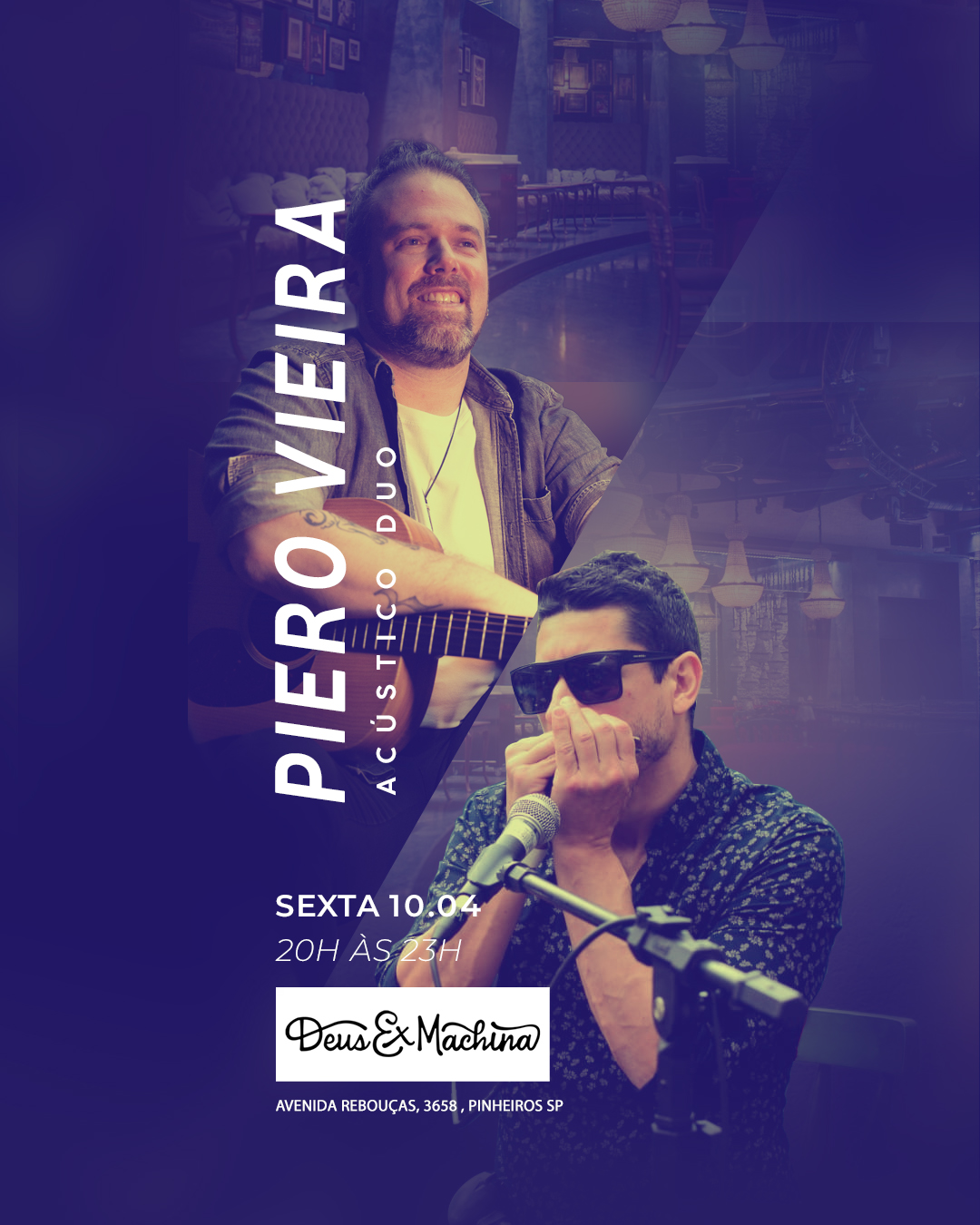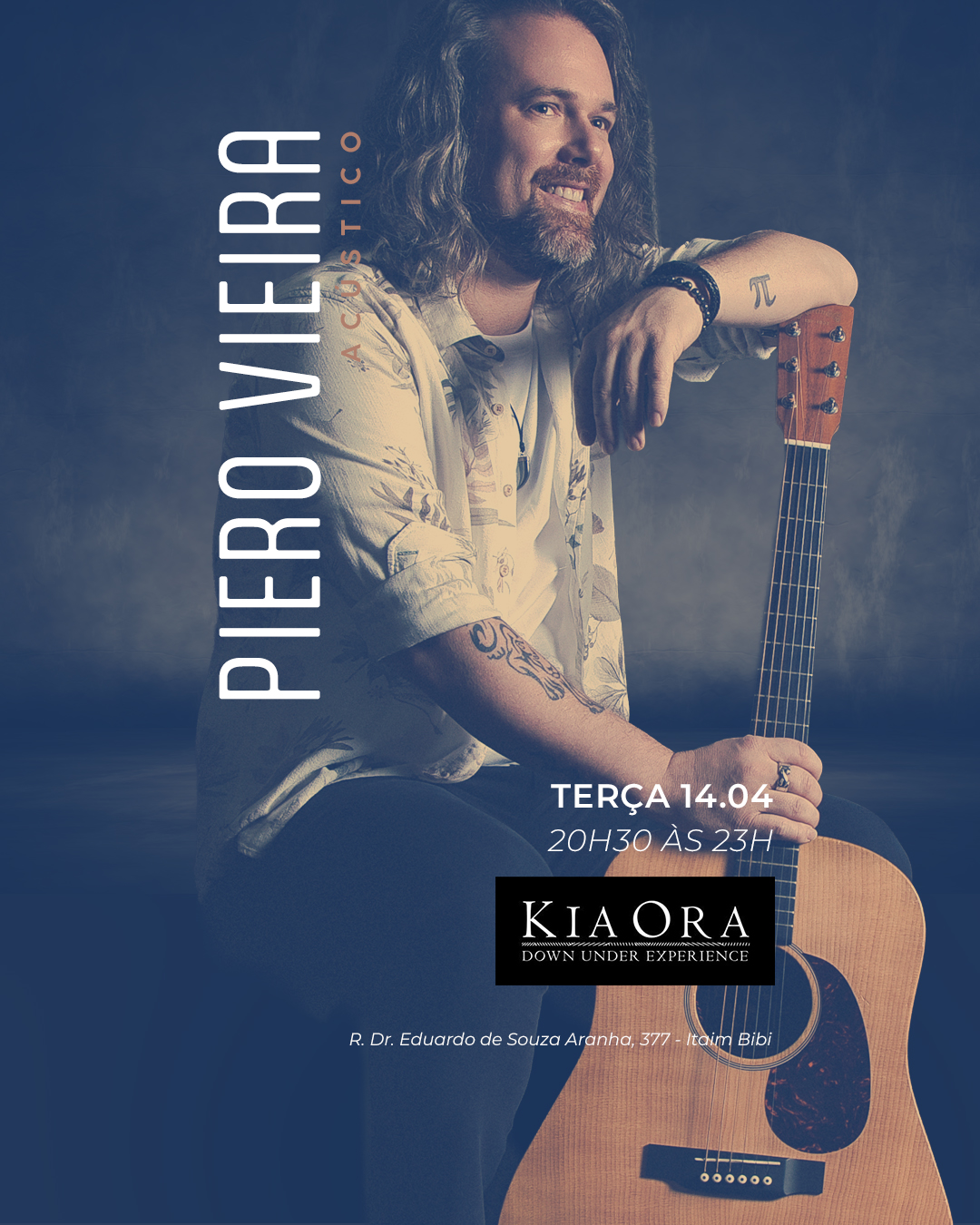 Piero Vieira é cantor, músico, intérprete e compositor com quase trinta anos de trajetória profissional. Desde 1997, construiu sua carreira de forma consistente, desenvolvendo uma relação profunda com o palco, com o público e com a música como linguagem de comunicação direta. Ao longo desse percurso, consolidou uma identidade artística própria, marcada pela sensibilidade interpretativa, pela presença cênica e pela escolha criteriosa de repertório. Seu trabalho transita com naturalidade entre o pop, o pop rock, o reggae e as brasilidades, sem se prender a rótulos fixos. A diversidade de estilos não fragmenta sua proposta – ao contrário, reforça uma assinatura clara, acessível e reconhecível.